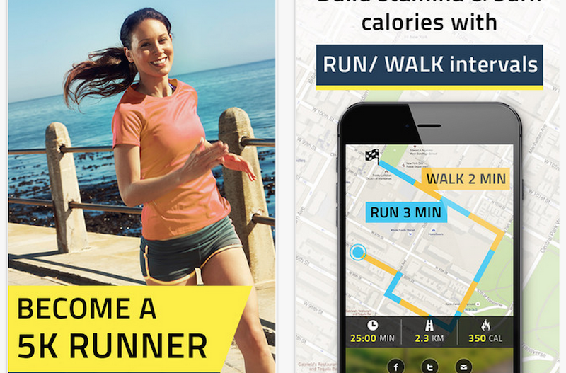 ถัดมากับ Couch to 5K Runner แสดงเส้นทางการวิ่งบนแผนที่ สามารถฟังเพลงโปรดไปขณะออกกำลังได้และแอพนี้ก็รองรับหน้าจอ Apple Watch แล้วเช่นกันวางจำหน่ายราคาปกติ 2.99$