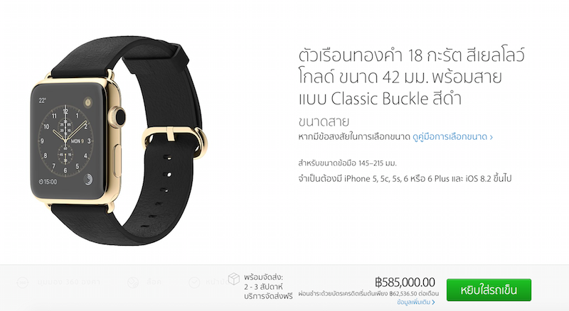 - สุดท้าย รุ่นสุดหรู Apple Watch Edition ตัวเรือนทองคำ 18 กะรัตมีราคาเริ่มต้นที่ 395,000 บาท