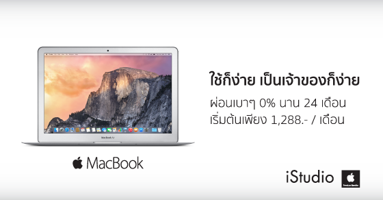 Mac ใช้ก็ง่ายเป็นเจ้าของก็ง่าย ผ่อนสบาย 0% นาน 24 เดือน หรือเลือกผ่อน 0% นาน 10 เดือน พร้อมรับ Cash Back สูงสุด 1,000 บาท ตั้งแต่วันนี้ – 13 ก.ย. 58 ที่ iStudio iBeat U.Store by comseven ทั่วประเทศ
