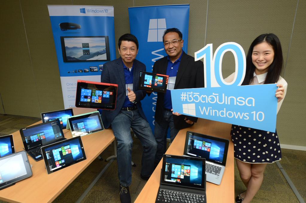จากรายงานของStatCounter ปัจจุบันร้อยละ 67 ของเครื่องพีซีและแท็บเล็ตในประเทศไทย ใช้งานอยู่บนวินโดวส์ 7 และ 8 โดยกลุ่มผู้ที่ใช้ดังกล่าวจะได้รับการแจ้งถึงการ อัปเกรดเป็นวินโดวส์ 10 ฟรี ได้ด้วยตนเองด้วยประสบการณ์ที่ง่ายและสะดวก สำหรับผู้ที่วางแผนที่ซื้อเครื่องคอมพิวเตอร์เครื่องใหม่ สามารถขอความช่วยเหลือจากจุดบริการการอัปเกรดวินโดวส์ (Windows 10 upgrade kiosks) ที่อยู่ภายในร้านค้าที่ร่วมรายการทั่วประเทศ เพื่อการอัปเกรดวินโดวส์ 10 ได้ฟรี เช่นเดียวกัน