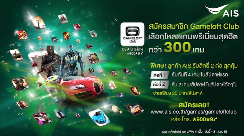 รายละเอียดเพิ่มเติมที่ www.ais.co.th/games/gameloftclub