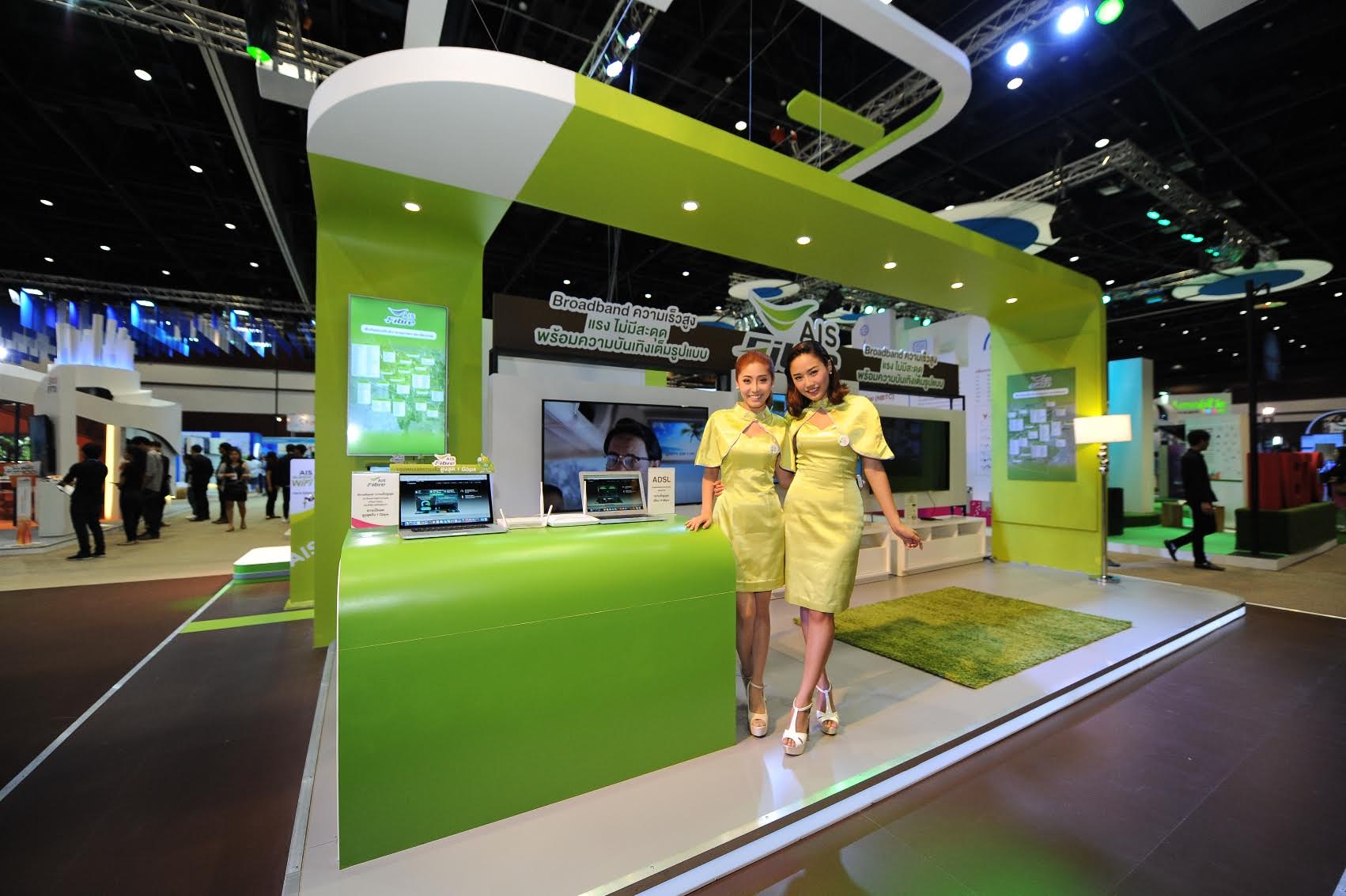 1.) AIS Fibre & AIS Play Box ส่วนบริการ AIS Fibre Broadband ความเร็วสูง ผ่านโครงข่ายใยแก้วนำแสงที่มีเสถียรภาพสูง ไร้สัญญาณรบกวน รับส่งข้อมูลได้เร็วสูงสุดถึง 1Gbps รองรับการใช้งานมัลติมีเดียอย่างเต็มรูปแบบ เช่น ดูทีวีผ่านเน็ต, เล่นเกมออนไลน์, ใช้งานกล้องวงจรปิด เชื่อมต่อการใช้งานอินเทอร์เน็ตจาก เอไอเอสได้ทุกที่ทุกเวลา มาพร้อมกับความบันเทิงเต็มรูปแบบ AIS Play Box ที่จะเปิดประสบการณ์การรับชมที่เหนือกว่า ให้คุณรับชมความบันเทิงทั้งภาพยนตร์ไทยและต่างประเทศจากฮอลลีวูด ซีรีส์ดัง กีฬา รายการทีวี เสียงเพลง ด้วยความคมชัดระดับอัลตร้า เอชดี โฟร์เค (ULTRA HD 4K) โดยในงานมีการจัดพื้นที่โชว์เป็น Living Room สำหรับให้ลูกค้าได้ทดลองสัมผัสประสบการณ์การใช้งาน AIS PLAYBOX ผ่านอินเทอร์เน็ตความเร็วสูง AIS Fibre