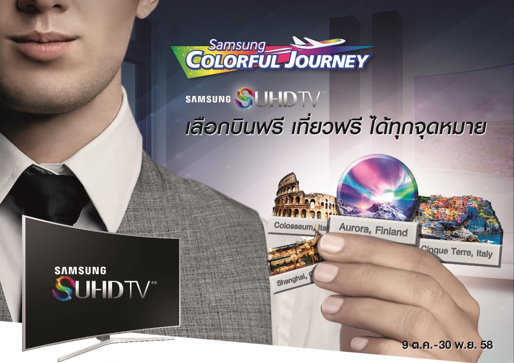 ซัมซุงส่งโปรโมชั่น “Colorful Journey” เลือกบินฟรี เที่ยวฟรี ได้ทุกจุดหมาย มูลค่ารวมกว่า 1,440,000 บาท สำหรับลูกค้า Samsung SUHD TV และ Samsung Curved TV เท่านั้น