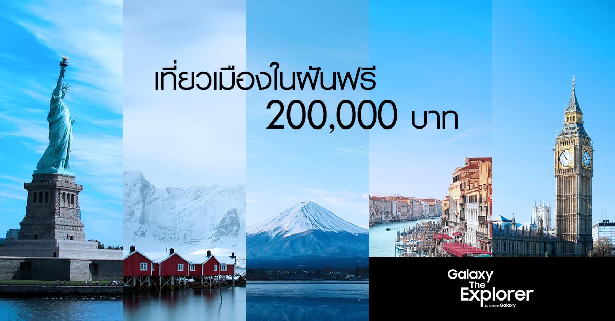 เพราะซัมซุงเชื่อว่าการออกไปเที่ยว ไปค้นหาจุดหมายปลายทางที่ฝันไว้ จะเป็นแรงบันดาลใจชั้นยอดให้ทุกคนสามารถพิชิตเส้นทางชีวิตได้เป็นอย่างดี ซัมซุงจึงจัดกิจกรรมสุดเจ๋ง Galaxy The Explorer เฟ้นหาสุดยอดวล็อคเกอร์ (Vlogger = VDO + Blogger) ช่วงชิงรางวัลเที่ยวทริปในฝันแบบฟรีๆ จำนวน 5 รางวัล รางวัลละ 200,000 บาท รวมมูลค่า 1,000,000 บาท
