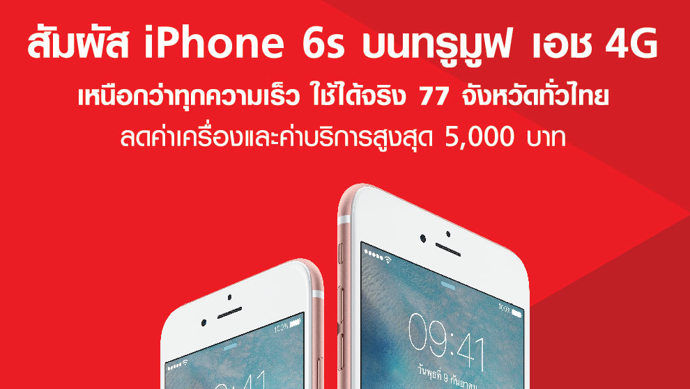 โปรโมชั่นที่ร้อนแรงสุดๆลดค่าเครื่องกับค่าบริการรายเดือนรวมแล้วถึง 5,000 บาท ทำให้ตัวเครื่อง iPhone 6s มีราคาเริ่มต้นที่ 23,900 บาทและ iPhone 6s Plus ราคาเหลือ 27,900 บาทเท่านั้น