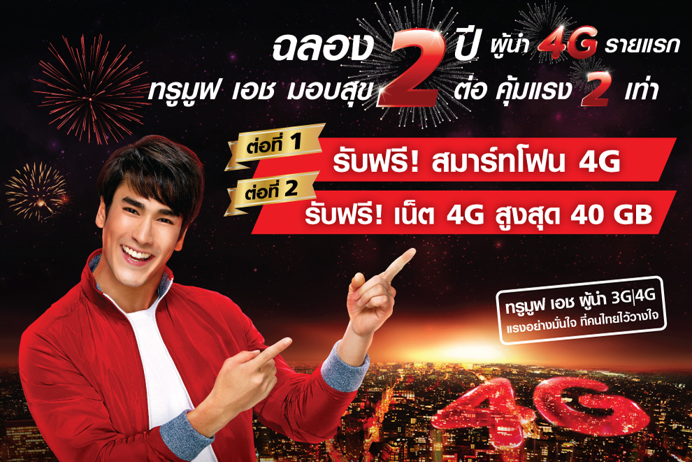 - ต่อที่ 2 รับเน็ต 4G ฟรี เพิ่มให้อีกสูงสุด 40 GB วันนี้ – 31 มกราคม 2559 ที่ทรูช้อปทั่วประเทศ