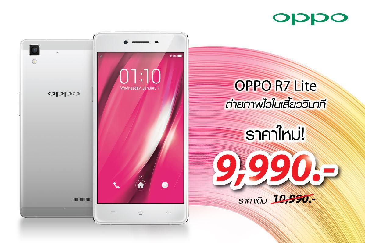 สไตล์ชัดกับที่สุดแห่งความแรง ประกาศลดราคาเครื่อง OPPO R7 Lite จากราคาเดิม 10,990 บาท เหลือเพียง 9,990 บาท! ดีไซน์หรูหราโดดเด่น ด้วยบอดี้โลหะพรีเมี่ยมทั้งตัวเครื่อง พร้อมฟังก์ชั่นโดนใจ ถ่ายภาพไวในเสี้ยวนาที