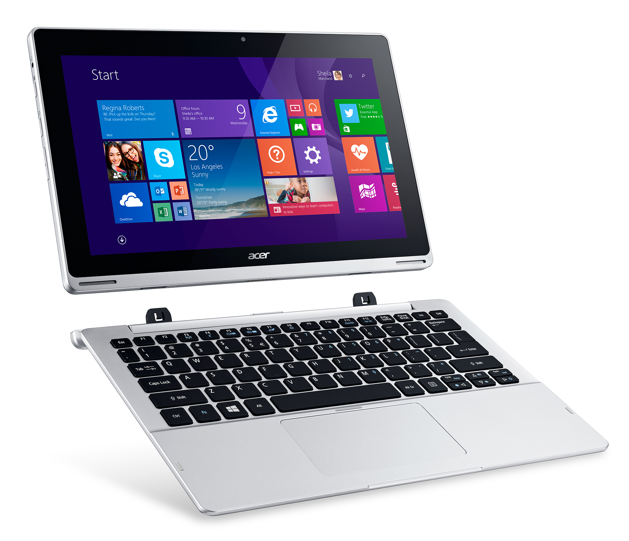 แนะนำแล็ปท็อปสำหรับคอเกมไปแล้วก็มาถึงอุปกรณ์ 2 in 1 อย่าง Acer Aspire Switch 11 กันบ้างพกพาสะดวกด้วยหน้าจอขนาด 11.6 นิ้ว แบบ HD (1366×768) ชิปเซ็ต Intel Core M 5Y10c Dual-core 800MHz แรม 4GB ฮาร์ดดิสก์ SSD ความจุ 60GB รองรับ MicroSD สูงสุด 128GB กล้องหน้า 1 เมกะพิกเซล และกล้องหลัง 5 เมกะพิกเซล ตัวเครื่องสมารถเชื่อมต่อรวมกับคีย์บอร์ดไร้สายที่มีฮาร์ดดิสก์ในตัวได้อีกด้วย ราคา 19,900 บาท