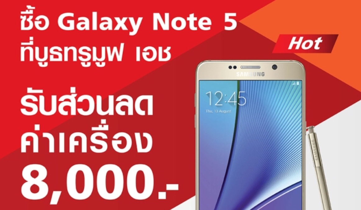 - Samsung Galaxy Note 5, Huawei Mate 8, Huawei GR 5, OPPO F1, vivo Y51 ลดค่าเครื่องสูงสุด 8,000 บาท พิเศษเฉพาะลูกค้า Galaxy Note 5 เปิดเบอร์ใหม่ในงานรับส่วนลดค่าเครื่องเพิ่มอีก 2,000 บาท