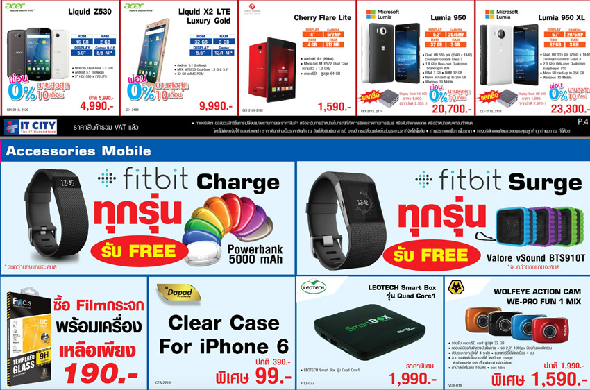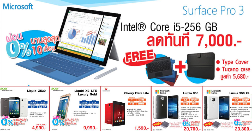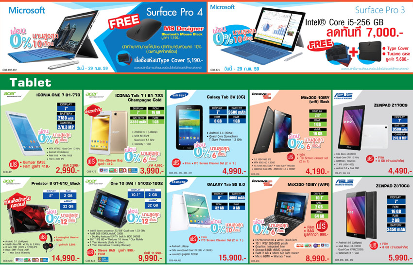 ส่วนหมวดสินค้าคอมพิวเตอร์และโน้ตบุ๊ก ก็นำสินค้ามาลดราคาประกอบด้วย Surface Pro 4 ในราคาสุดพิเศษ และเมื่อซื้อพร้อม Type Cover และนำบัตรนักเรียน นักศึกษามาแสดงเพื่อใช้สิทธิ์ รับส่วนลดอีกทันที 10 เปอร์เซ็นต์ และแถมฟรี MS Designer Bluetooth Mouse Black มูลค่า 1,190 บาท และ Surface Pro 3 Intel Core i5-256GB ลดทันที 7,000 บาท แถมฟรี Type Cover และ Tucano case มูลค่า 5,680 บาท ทั้งนี้สินค้าหลายรายการที่จำหน่ายที่ไอที ซิตี้ สามารถผ่านปลอดดอกเบี้ย 0 เปอร์เซ็นต์นานถึง 10 เดือน สอบถามรายละเอียดได้ที่ไอที ซิตี้ คอลล์เซ็นเตอร์ โทรศัพท์ 0-2656-5030 หรือคลิ๊กเข้าไปที่เว็บไซต์ www.itcity.co.th