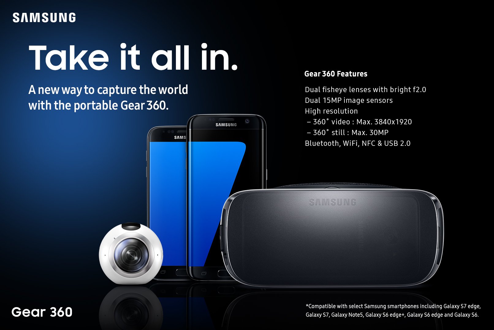 นอกจากนี้ยังได้เปิดตัว Gear 360 กล้องถ่ายวิดีโอ 360 องศาขนาดเท่าลูกเทนนิสสามารถใช้กับ Galaxy S7 และ Gear VR ได้เลยโดยและมีระบบ Software ที่ช่วยต่อภาพให้เป็น 360 ได้ทันที