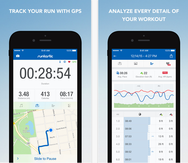 Runtastic แอพกำลังกายด้วยการวิ่งชื่อดังบนสมาร์ทโฟนเหมาะสำหรับผู้ต้องการวิ่งจ็อกกิ้งยามเช้า เดินออกกำลัง วิ่ง การขี่จักรยานที่ล่าสุดได้ออกแบบมาให้รองรับการใช้งานบน Apple Watch ด้วยแล้ว กับเมนูบนข้อมือที่ใช้งานง่ายมีเสียงโค้ชคอยบอกเวลาและระยะทาง และยังสามารถเปิดเพลงในเครื่องฟังขณะวิ่งได้อีกด้วย ตัวแอพยังเรียกใช้งาน GPS จาก iPhone เพื่อให้ทราบตำแหน่ง เส้นทาง ระยะทาง ความเร็วในการวิ่ง เมื่อเสร็จกิจกรรมก็สามารถแชร์ไปยัง Facebook และ Twitter ได้ทันทีอีกด้วย