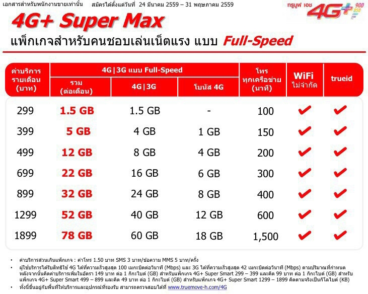 - 4G Plus Super Max สำหรับคนชอบเน็ตแรง แบบเต็มสปีด 4G เล่นเน็ตแรงสูงสุดถึง 78GB เล่นเน็ตได้แรงแบบ 4G Plus เร็วแรงกว่าทุกค่าย เริ่มต้นเพียงเดือนละ 499 บาท เน็ตหมดคิดค่าเน็ตตามจริง สำหรับคนเน้นโทรและเน็ต พร้อมเล่นเน็ตแบบแรงๆ