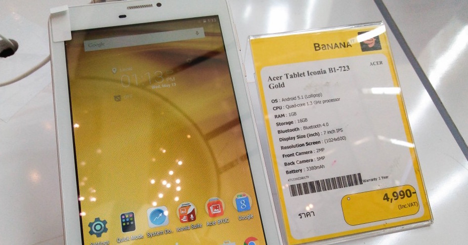 • Acer Tablet Iconia B1-723 Gold ราคาปกติ 4,990 บาท แต่ในงานนี้ลดไปอีก 1,000 บาท หากจ่ายด้วยเงินสด
