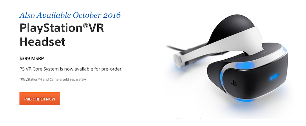 ขณะที่ชุด PlayStation VR Launch Bundle ที่มาพร้อมอุปกรณ์ครบเซ็ตได้เปิดจองไปก่อนหน้าวางจำหน่ายในราคา $499.99 ก็สามารถสั่งจองได้อีกครั้งที่ Bestbuy,GameStop และ Walmart โดยสินค้าจะวางจำหน่ายทางการในวันที่ 31 ตุลาคมปีนี้