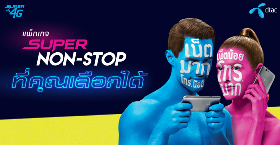 การแข่งขันทางด้านแพ็กเกจโปรโมชั่น 4G ของผู้ให้บริการเครือข่ายในบ้านเราช่วงนี้ ดูเหมือนจะมีความน่าสนใจมากยิ่งขึ้น เพราะแต่ละค่ายก็ต่างงัดจุดเด่นและความคุ้มค่ามานำเสนอให้กับผู้บริโภคกันอย่างมากมาย เลยทำให้เกิดความหลากหลายของแพ็กเกจโปรโมชั่น 4G ที่มีมาให้เลือกเป็นจำนวนมาก ส่งผลทำให้หลายคนอาจเกิดความสับสน มึนงงว่าจะเลือกแพ็กเกจ 4G อย่างไรดีให้เข้ากับการใช้งานของตัวเอง ดังนั้นในวันนี้จึงขอมาแนะนำอีกหนึ่งแพ็กเกจโปรโมชั่น 4G จากค่าย dtac กับแพ็กเกจที่มีชื่อว่า dtac Super Non-Stop ซึ่งจะมาพร้อมวิธีการและคำแนะนำในการเลือกแพ็กเกจให้ตรงกับการใช้งานของแต่ละคนอีกด้วย