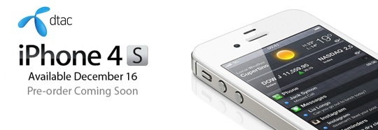 สิ้นสุดการรอคอยสำหรับผู้ที่รอคอยการวางจำหน่าย iPhone 4S ในประเทศไทย เมื่อทาง dtac ได้เผยข้อมูลทางทวิตเตอร์ @dtac_fellgoood ว่าในวันที่ 16 ธ.ค. นี้ ดีแทคพร้อมวางจำหน่าย dtac iPhone 4S ที่ สนง.บริการลูกค้าดีแทคและดีแทคเซ็นเตอร์ ติดตามการเปิดจองได้เร็วๆ นี้
