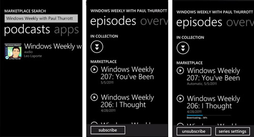 โดยฟีเจอร์นี้จะเป็นฟีเจอร์ใหม่ที่ยินยอมให้ผู้ใช้สามารถ Subscribe และดาวน์โหลด Podcast ผ่านทางโทรศัพท์มือถือ Windows Phone 7 ได้ทุกรุ่น อีกทั้งยังสามารถเล่น Podcast ไปในระหว่างที่ทำการดาวน์โหลดได้อีกด้วย