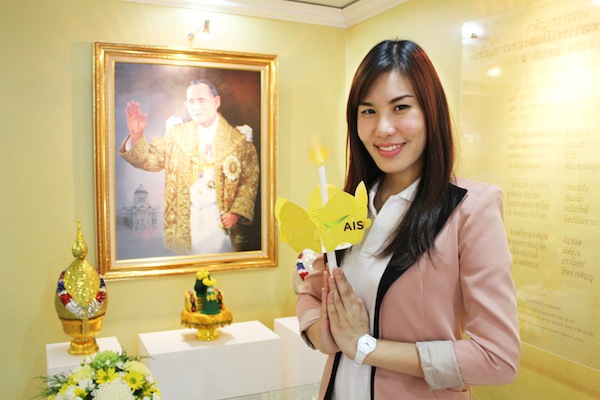 เอไอเอส เชิญชวนลูกค้าร่วมถวายพระพร  เนื่องในวโรกาสที่พระบาทสมเด็จพระเจ้าอยู่หัวฯ ทรงมีพระชนมพรรษา 7 รอบ ในวันที่ 5 ธ.ค.นี้  โดยมอบเทียนชัยถวายพระพรให้ลูกค้าที่เข้าไปใช้บริการที่เอไอเอส ช็อป และเซเรเนด คลับ ทุกสาขาทั่วประเทศ ตั้งแต่วันนี้ – 5 ธ.ค.54 (ของมีจำนวนจำกัด)