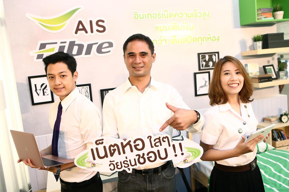 วันนี้ เอไอเอส ไฟเบอร์ จึงคิดค้นนวัตกรรมการให้บริการอินเทอร์เน็ตความเร็วสูงแบบเติมเงิน เป็นรายแรกของไทย ในชื่อ “เน็ตหอ” เพื่อตอบสนองความต้องการใช้งานของกลุ่มนิสิต นักศึกษา ที่พักอาศัยตามหอพักโดยเฉพาะ โดยมอบความสะดวกและคุ้มค่า ให้ลูกค้าสามารถเลือกใช้บริการอินเทอร์เน็ตความเร็วสูงในลักษณะของ Pay per use ได้ตามต้องการ ใช้แค่ไหน เติมเงินเท่านั้น ด้วยราคาที่ประหยัดที่สุดในตลาด เริ่มต้น ความเร็ว 15/5 Mbps เพียง 500 บาท ต่อ 30 วัน โดยทุกแพ็กเกจ ฟรี! ค่าติดตั้งพร้อมอุปกรณ์ Router ไม่มีค่ามัดจำใดๆ ไม่ต้องทำสัญญารายปี ใช้แค่ไหน เติมเงินเท่านั้น สมัครง่าย ไม่ยุ่งยาก เติมเงินง่าย สะดวกสบายผ่านทุกช่องทางเติมเงิน วัน-ทู-คอล! อีกทั้ง ให้ทดลองใช้ฟรี! 1 วัน เพื่อพิสูจน์ความเร็วว่าเต็มสปีดจริงๆ ซึ่งลูกค้ามั่นใจได้ ด้วยจุดแข็งของเทคโนโลยีไฟเบอร์ออพติก 100% เข้าถึงหอพัก และกระจายสัญญาณไปยังห้องพักแต่ละห้อง จึงให้ความเร็วได้เต็มสปีดทุกห้อง โดยไม่ต้องแชร์สปีดกับห้องข้างเคียง มอบประสบการณ์ใหม่ในการใช้อินเทอร์เน็ตความเร็วสูงภายในห้องพัก ช่วยให้นักศึกษาสามารถประหยัดค่าใช้จ่าย พร้อมกับได้ใช้เน็ตที่คุณภาพดีกว่า ซึ่งปัจจุบัน เน็ตหอ โดย เอไอเอส ไฟเบอร์ ได้เปิดให้บริการแล้ว ที่หอพักบริเวณรอบมหาวิทยาลัย ทั้งในกรุงเทพฯ และปริมณฑล อาทิ ย่านรังสิต, ศาลายา, งามวงศ์วาน ฯ รวม 20 อาคาร ครอบคลุม 4,704 ยูนิต และวางแผนขยายเพิ่มอีกเป็น 900 อาคารภายในสิ้นปี 59”