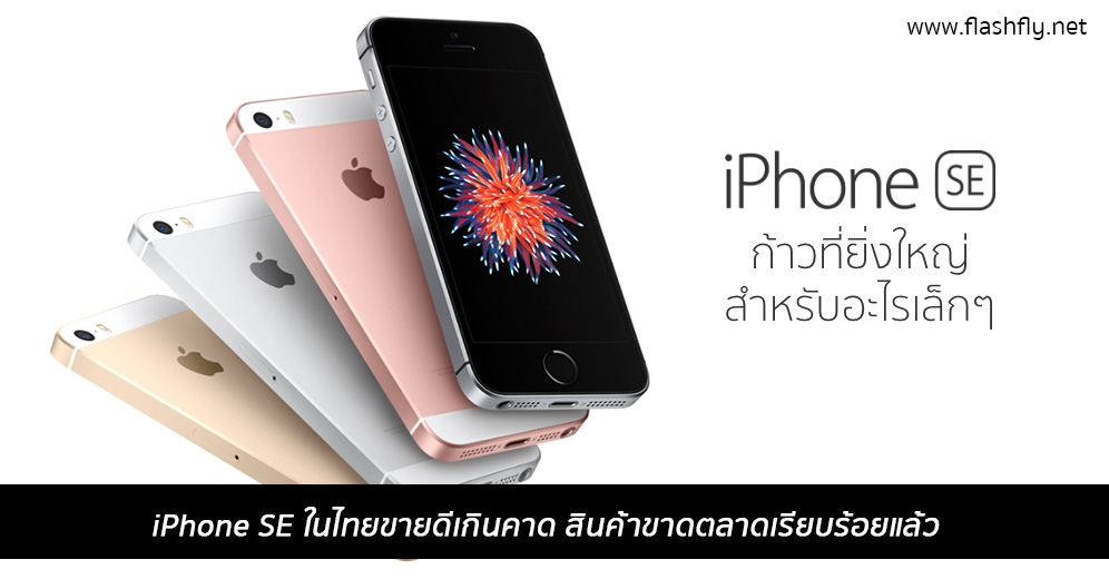 หลังจากที่ iPhone SE วางจำหน่ายในประเทศไทยอย่างเป็นทางการเมื่อวันที่ 11 พฤษภาคมที่ผ่านมา ต่างก็ได้รับการตอบจากแฟนๆ iPhone เป็นอย่างดีเช่นเคย โดยถือว่ารุ่นนี้เป็นที่มีราคาถูกที่สุดเท่าที่ Apple เคยว่าจำหน่าย iPhone มาเลยทีเดียว ซึ่งผู้ที่จองสินค้าไว้ในล็อตแรกๆ จะรับสินค้าตามที่จองไว้ แต่สำหรับใครที่สนใจจะซื้อตอนนี้ดูเหมือนต้องตามหายากสักหน่อยเพราะสินค้าขาดตลาดไปเรียบร้อยแล้ว
