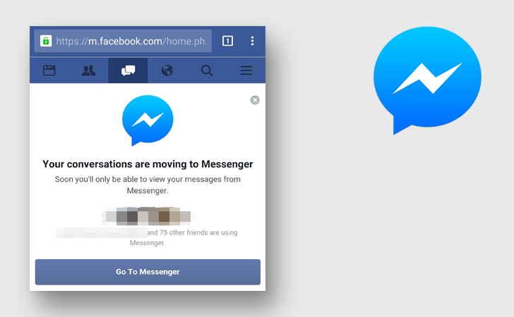 Facebook พยายามผลักดันให้ผู้ใช้งานดาวน์โหลดแอพพลิเคชั่น Messenger มาใช้มากขึ้น ตามรายงานของ Android Police พบว่า Facebook ทำให้การสนทนาหรือแชทบนเว็บไซต์มือถือ เป็นไปได้ยากขึ้น