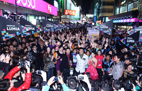 เปิดตัวอย่างอลังการกันไปเป็นที่เรียบร้อยแล้วสำหรับ Nokia Lumia 800 และ Nokia Lumia 710 ในประเทศฮ่องกง งานนี้ Nokia ทุ่มจัดงานแบบปิดถนนย่านช๊อปปิ้งชื่อดังในฮ่องกงกันเลยทีเดียว
