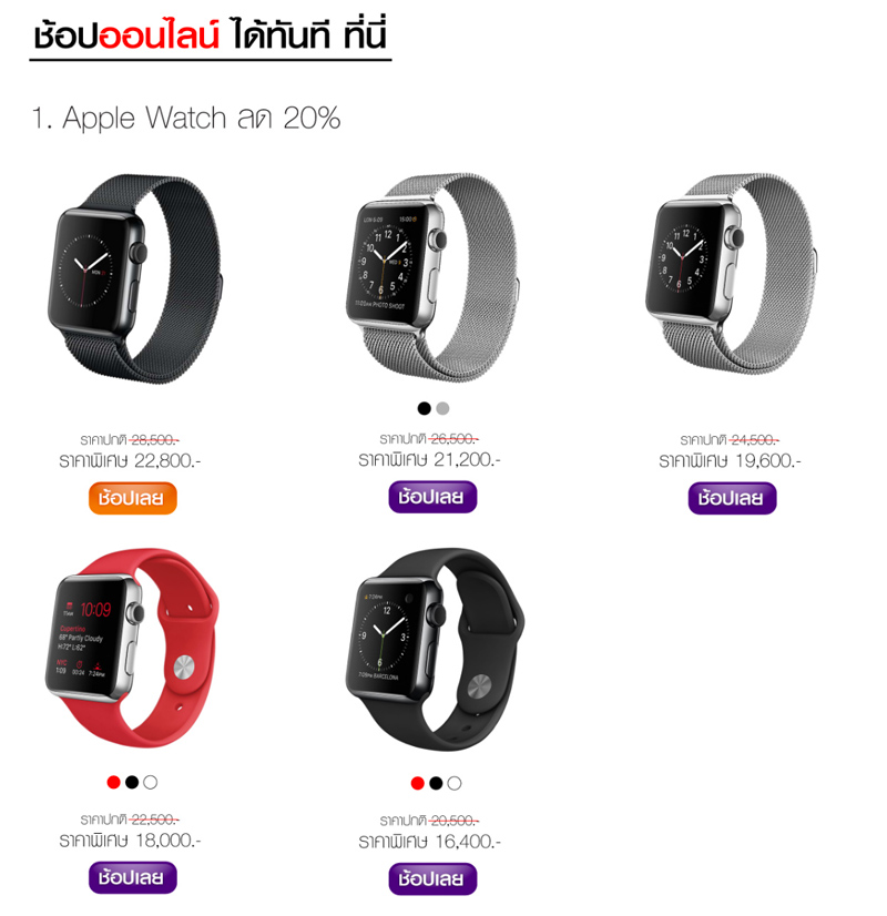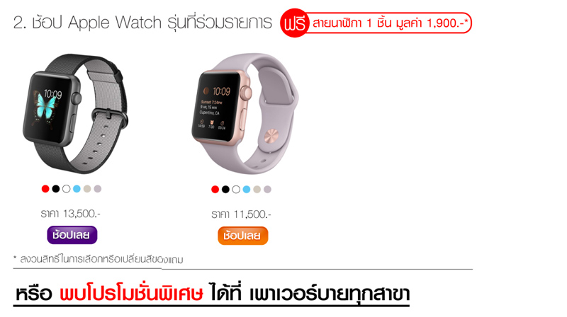 Power Buy จัดโปรโมชั่นพิเศษนำ Apple Watch ลดราคา 20% ลดสูงสุดมูลค่า 5,700 บาท รวมไปถึงยังมีโปรโมชั่น ช้อป Apple Watch รุ่นที่ร่วมรายการ รับฟรีสายนาฬิกา 1 ขิ้น มูลค่า 1,900 บาท เมื่อช้อปออนไลน์กับทาง Power Buy