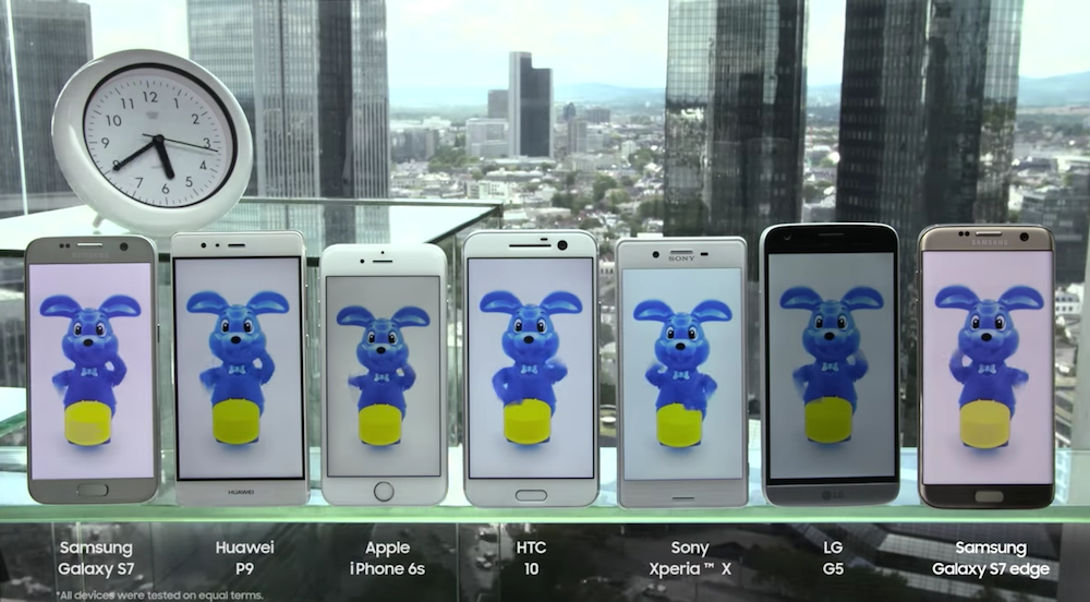 Samsung Deutschland ระบุว่าสมาร์ทโฟน Huawei P9, iPhone 6s, HTC 10, Sony Xperia X และ LG G5 ที่นำมาทดสอบในครั้งนี้ ถูกปิดการเชื่อมต่อทั้ง Wi-Fi, NFC, Bluetooth ไม่ได้ใส่ซิมการ์ด ปรับความสว่างของจอแสดงผลเท่ากัน และแบตเตอรี่ถูกชาร์จจนเต็มแล้ว 100%