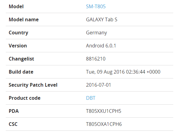 ทั้งนี้ Samsung Galaxy Tab S รุุ่นแรก ที่จะได้รับการอัพเดทระบบปฏิบัติการเป็นเวอร์ชั่น Marshmallow ยังรองรับเฉพาะรุ่น Galaxy Tab S 10.5 LTE หรือรหัสรุ่น SM-T805 และเจ้าของแท็บเล็ตจะสามารถติดตั้งระบบปฏิบัติการเวอร์ชั่นใหม่ได้ผ่านทาง over-the-air (OTA)