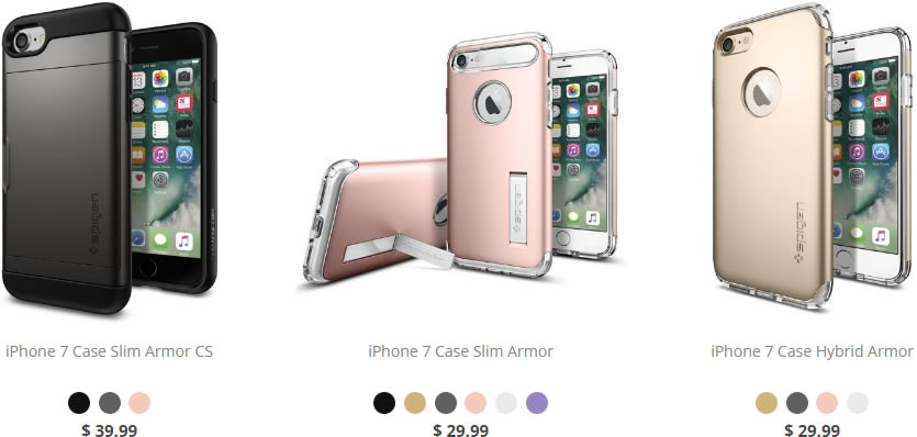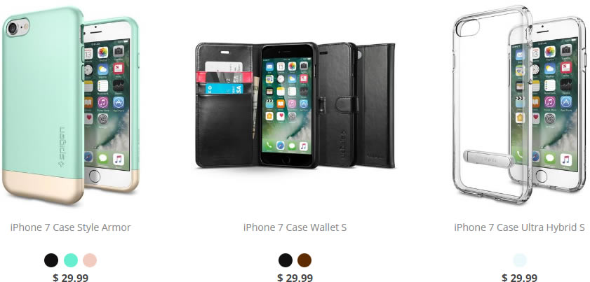 Spigen วางจำหน่ายเคส iPhone 7 และ iPhone 7 Plus ผ่านช่องทางออนไลน์ของเว็บไซต์ ในราคา 15 – 40 ดอลล่าร์สหรัฐ หรือราว 520 – 1,380 บาท แต่ถ้าซื้อผ่าน Amzon จะได้ราคาถูกกว่านี้ 3 – 5 ดอลล่าร์สหรัฐ