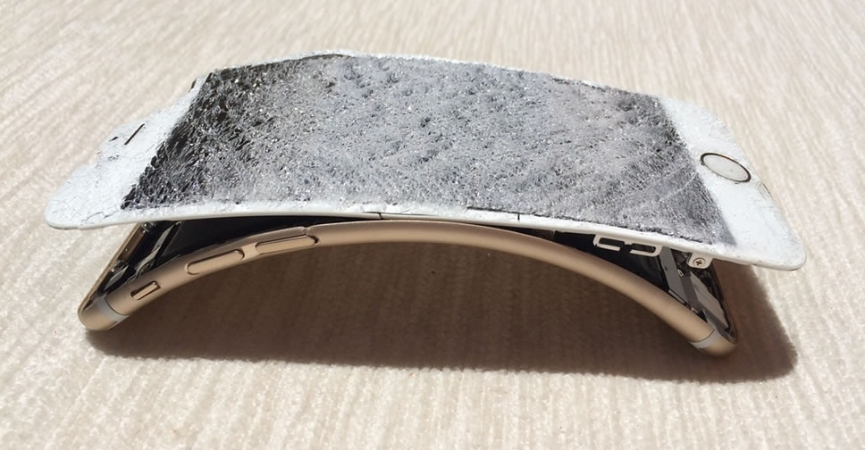 รูปภาพด้านบนคือ iPhone ของสมาชิกเว็บไซต์ Reddit ที่แชร์มาให้ชาวเน็ตได้ชม เจ้าของภาพบอกว่ามันตกลงไปบนลู่วิ่งไฟฟ้า สำหรับออกกำลังกาย แล้วถูกดูดเข้าไปในเครื่อง จากนั้นก็มีสภาพอย่างที่เห็น โครงสร้างถูกดัดจนโค้งงอ จอแสดงผลก็แตกละเอียด และแผงหน้าจอก็หลุดออกจากตัวเครื่อง
