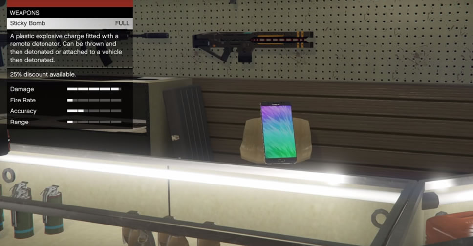 Samsung Galaxy Note 7 ในเกม GTA 5 ถูกใช้แทน Sticky Bomb สามารถนำมันไปติดกับตัวรถหรือทิ้งลงพื้นแล้วสั่งระเบิดได้ และยังใช้ต่อสู้กับตำรวจในเกมอย่างบ้าคลั่ง แต่สำหรับ Samsung คงไม่สนุกไปกับ MOD ตัวนี้อย่างแน่นอน