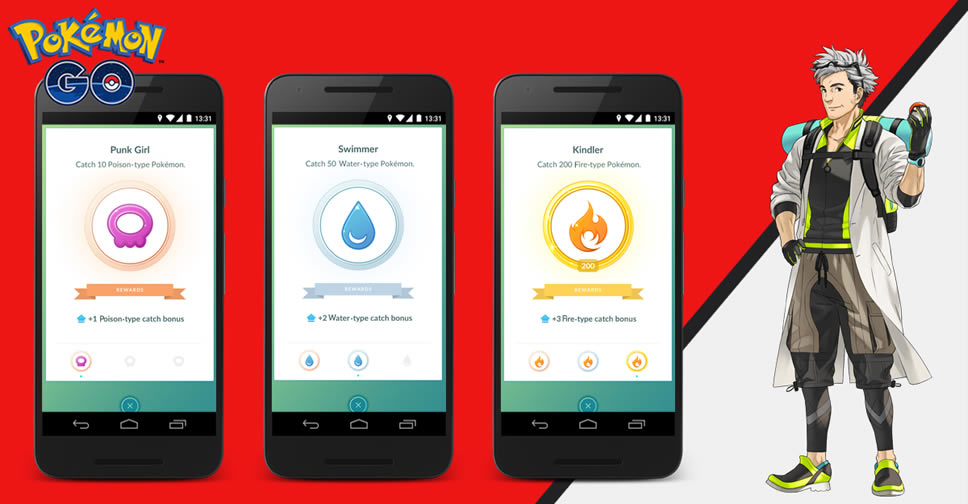 ตัวอย่างเช่น เมื่อได้รับรางวัล Kindler ในระดับสูง จะทำให้พบ Pokémon ธาตุไฟเพิ่มขึ้น เช่น Charmander, Vulpix และ Ponyta แต่ถ้าเทรนเนอร์จับ Pokémon ที่มีหลายธาตุในตัวเดียว Catch Bonus ที่ได้ก็จะถูกเฉลี่ยออกไป ดังนั้นเทรนเนอร์มีโอกาสที่จะเลือกเป็นสุดยอด Pokémon ธาตุใดธาตุหนึ่งเป็นพิเศษ เพราะจะทำให้ค้นพบ Pokémon หายากตามธาตุนั้นได้ง่ายขึ้น