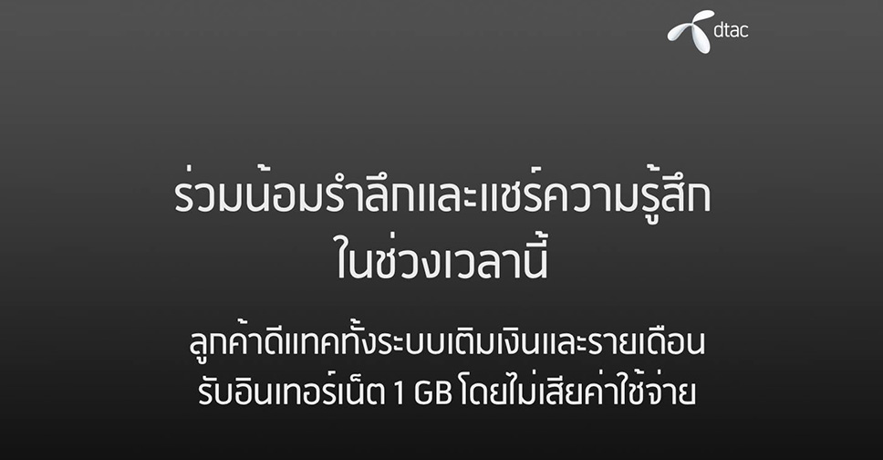 dtac ร่วมน้อมรำลึกและแชร์ความรู้สึกให้ลูกค้าทั้งรายเดือนและเติมเงินรับเน็ตฟรี 1 GB