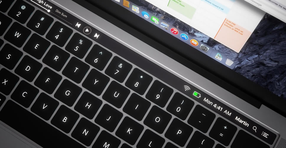 OLED touch bar เป็นแผงสัมผัสที่ใช้งานแทนปุ่มฟังก์ชั่นเดิม แต่สามารถปรับเปลี่ยนการใช้งานได้หลายรูปแบบ ตามโปรแกรมทีกำลังทำงาน และอาจจะรวม Touch ID ไว้ในนั้นด้วย