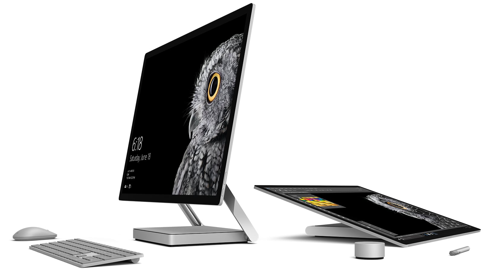 Surface Studio ใช้จอแสดงผล PixelSense หรือ TrueColor ให้มาตราส่วนเท่าขนาดจริง (1 นิ้ว บนจอแสดงผล เท่ากับ 1 นิ้ว ในไม้บรรทัดที่เราถืออยู่) เพื่อมอบประสบการณ์ที่ดีที่สุดสำหรับผู้ใช้งานที่เป็นนักออกแบบ