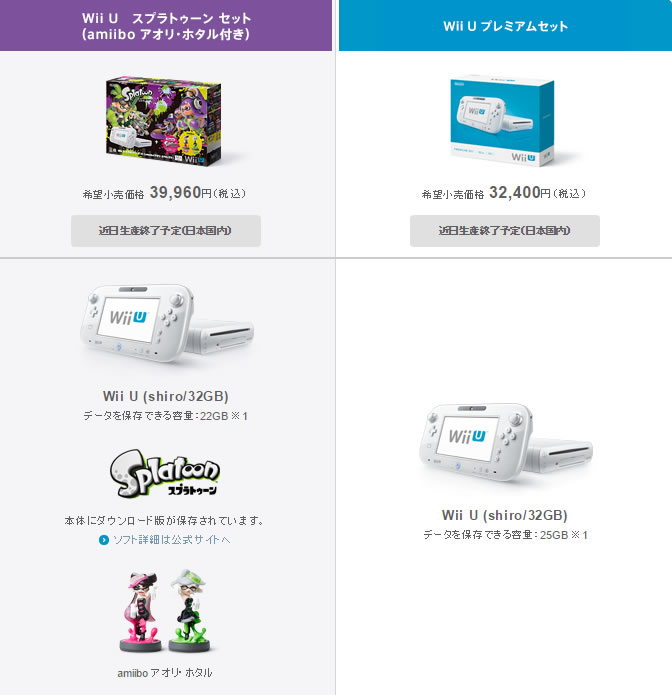 Nintendo ไม่ได้ออกประกาศอย่างทางการ แต่ใส่ข้อความไว้ใต้รายการสินค้าของ Wii U รุ่น 32GB สีขาว โดยระบุชัดเจนว่า “การผลิตกำลังจะสิ้นสุดลงในเร็วๆ นี้” ทั้งเวอร์ชั่นธรรมดาที่มีแต่คอนโซล กับเวอร์ชั่น Premium Set ที่แถม amiibo มาให้ในกล่อง