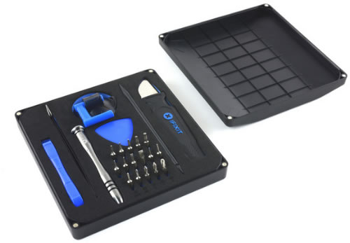 สำหรับใครที่ต้องการเริ่มต้นซ่อมแซมหรือศึกษาฮาร์ดแวร์ของสมาร์ทโฟน Essential Electronics Toolkit มาพร้อมเครื่องมือที่ครบครัน ผลิตจากวัสดุคุณภาพสูง และมีชุดดอกไขควงขนาดเล็กให้เลือกใช้ถึง 16 ขนาด ทั้งหมดถูกเก็บไว้ในกล่อง ABS อย่างดี พร้อมถาดโฟมที่ช่วยเก็บอุปกรณ์ให้เป็นระเบียบ