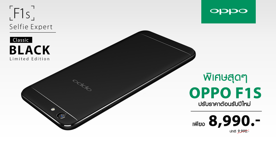 OPPO จัดโปรดีๆต้อนรับปีใหม่ประกาศปรับราคา OPPO F1s ทุกสีจาก 9,990 บาท เหลือเพียง 8,990 บาท เพื่อมอบเป็นของขวัญสุดพิเศษแก่ลูกค้าคนสำคัญ งานนี้ได้ใจสาวกเซลฟี่ไปเต็มๆ