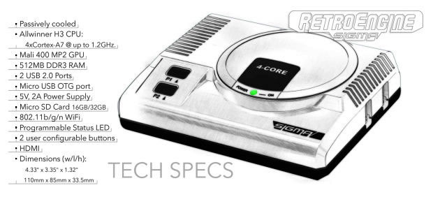 RetroEngine Sigma จะเล่นเกมจาก ROM ที่บันทึกไว้ในการ์ด microSD โดยผู้ผลิตจะติดตั้งมาให้ 15 เกม เปิดรับออเดอร์ผ่าน Indiegogo คาดว่าจะเริ่มวางจำหน่ายได้ในไตรมาสที่ 2 ปี 2017