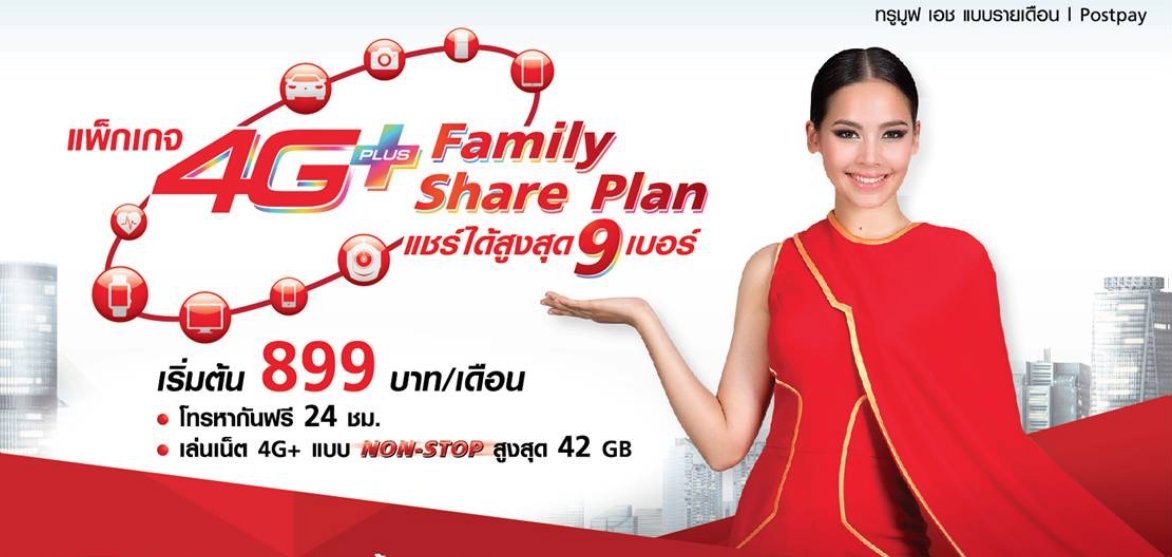 ความน่าสนใจของแพ็กเกจ 4G Family Share Plan จากทางทรูมูฟ เอช นั่นก็คือ สามารถแชร์ได้ทั้งเน็ตและโทร สูงสุดถึง 9 เบอร์ โทรหากันฟรีตลอด 24 ชม. และเล่นเน็ต 4G+ แบบ Non-Stop สูงสุดถึง 42 GB อีกด้วย โดยตัวแพ็กเกจมีมาให้เลือกตั้งแต่ ค่าบริการรายเดือนเริ่มต้นที่ 899 บาทสามารถเล่นเน็ต 4G|3G Non Stop ได้ 14GB โทรฟรีทุกเครือข่าย 500 นาทีและแชร์โทรพร้อมเน็ตได้สูงสุด 5 เบอร์ ไปจนถึงค่าบริการรายเดือนที่ 2,499 บาท สามารถเล่นเน็ต 4G|3G Non Stop ได้ 42GB โทรฟรีทุกเครือข่าย 2,500 นาทีและแชร์โทรพร้อมเน็ตได้สูงสุด 9 เบอร์ รวมถึงยังได้ใช้งาน WiFi ไม่จำกัดอีกด้วย