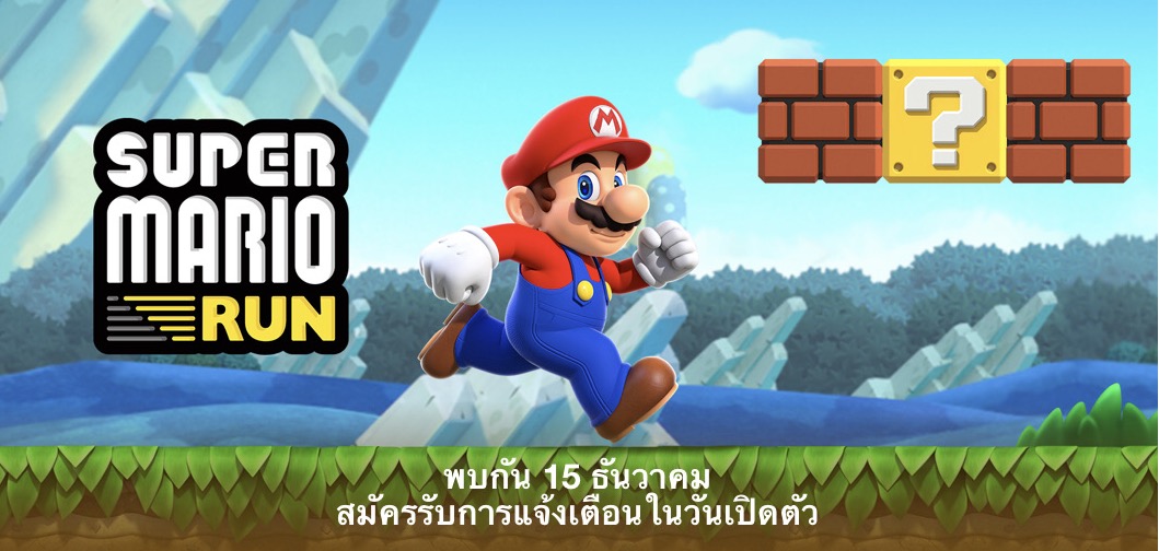 ตามนัดในวันที่ 15 ธันวาคมนี้จะเป็นวันแรกที่เกมชื่อดัง Super Mario Run บน iOS จะปล่อยให้แฟนๆทั่วโลกรวมทั้งประเทศไทยดาวน์โหลดกันอย่างเป็นทางการ โดยเป็นครั้งแรกที่ Nintendo นำเอาเกม Super Mario มาลงระบบสมาร์ทโฟนอีกด้วย ซึ่งคาดว่าจะเปิดให้ดาวน์โหลดภายในวันนี้แน่นอน