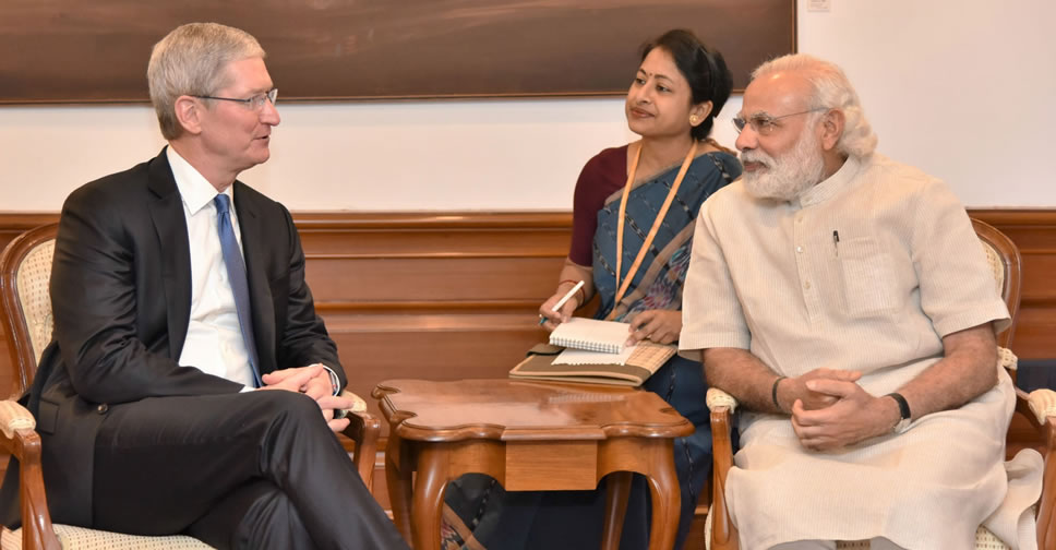 Tim Cook ซีอีโอของ Apple กับ Narendra Modi นายกรัฐมนตรีของอินเดีย