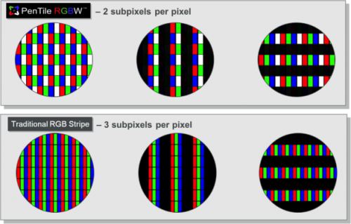 สำหรับจอแสดงผลขนาด 10.1 นิ้วที่ความละเอียด 2560 x 1600 (300 พิกเซลต่อนิ้ว ใกล้เคียงกับ Retina Display ของ iPhone 4 หรือประมาณ 2 เท่าของความละเอียดระดับ HD) จะใช้เทคโนโลยีที่เรียกว่า RGBW PenTile ซึ่งนอกจากจะให้ความละเอียดค่อนข้างสูงแล้ว มันยังใช้พลังงานน้อยกว่าจอ RGB LCD ทั่วไปถึง 40% ซึ่งนั่นหมายความว่า แบตเตอรี่ของแท็บเล็ตที่ใช้จอแบบใหม่นี้จะใช้งานได้นานขึ้น โดยทาง Samsung คาดว่า ผู้บริโภคจะได้สัมผัสกับแท็บเล็ตที่ใช้เทคโนโลยีจอ PenTile ในช่วงปลายปี 2011