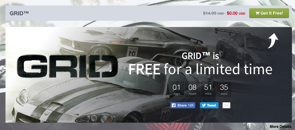 มาอีกแล้วเกมแจกฟรีปลายปีโดยครั้งนี้เป็นของเว็บไซต์ Humble Bundle ที่ได้แจกฟรี GRID เกมรถแข่งสมจริงสุดมันส์ภาคแรกบน PC จากปกติราคา $14.99 หรือราว 540 บาท ขณะที่บน Steam เกมนี้ราคาปกติ 315 บาท (ตอนนี้จัดโปรโมชั่นลดเหลือ 56.70 บาท )ซึ่งแจกฟรีเพียง 2 วันเท่านั้นใครที่เป็นแฟนเกม Colin McRae หรือ DiRT ห้ามพลาด