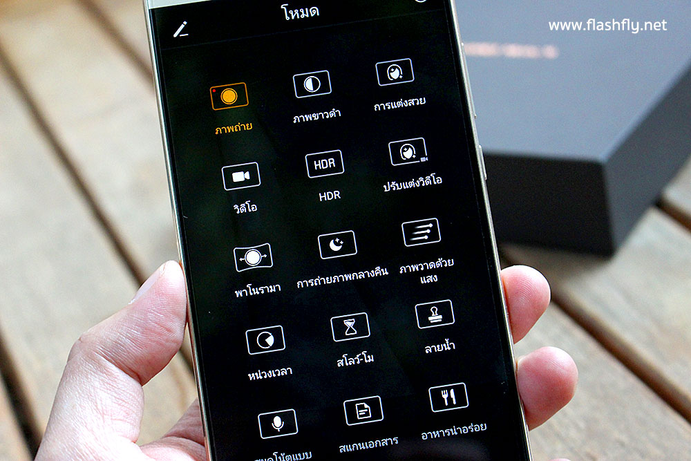 ตัวเครื่องขนาดหน้าจอ 5.9 นิ้วแต่อยู่ในขนาดของสมาร์ทโฟนจอ 5.5 นิ้วหนักราวๆ 190 กรัมถือได้เต็มๆมือแบบนี้