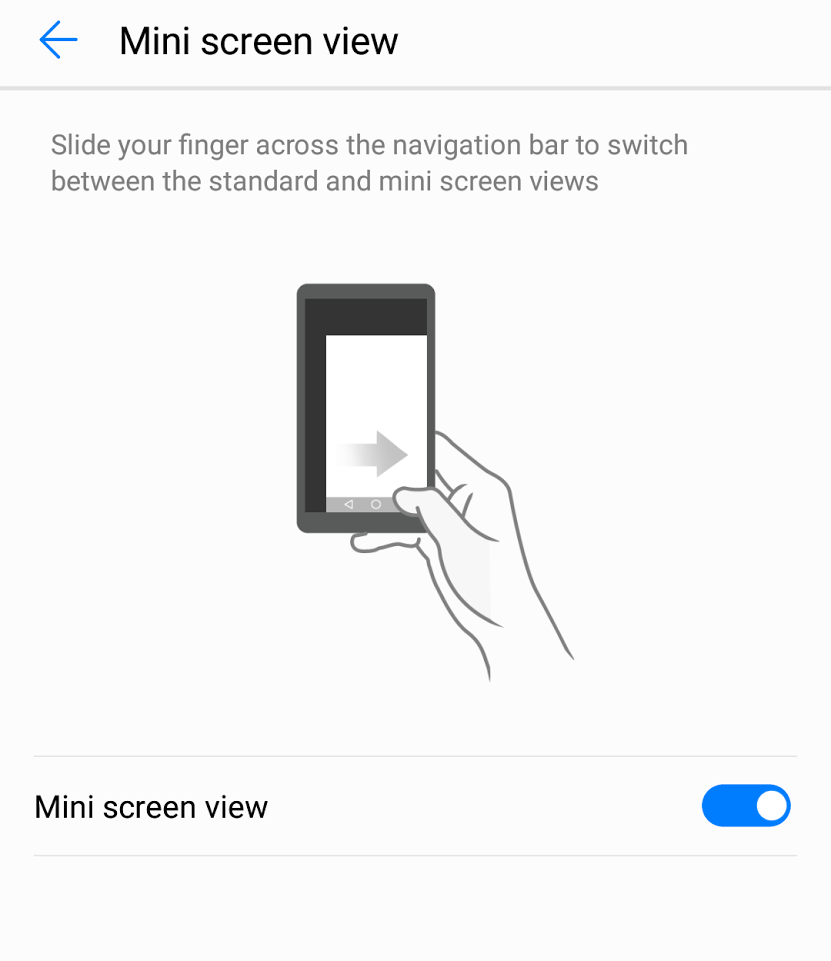 การใช้งานมือเดียวก็สามารถใช้งานงานมินิสกรีนย่อหน้าจอลงมาก็ทำได้ง่ายๆแค่ใช้นิ้วลากบริเวณแทบเมนูด้านล่างไปทางซ้ายหรือขวาก็ได้ ถ้าจะให้ขยายกลับเหมือนเดิมก็ลากนิ้วย้อนกลับไปเท่านั้น