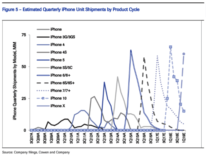 ตามบันทึกของ Timothy Arcuri เขาเรียก iPhone รุ่นใหม่ว่า iPhone 10 หรือ iPhone X ใช้จอแสดงผล OLED ขนาด 5.8 นิ้ว ดีไซน์ไร้ขอบจอ มาพร้อม Touch ID ที่ถูกติดตั้งไว้ใต้กระจกของจอแสดงผล และจะเปิดตัวพร้อมกับ iPhone รุ่น 4.7 นิ้ว กับ 5.5 นิ้ว นอกจากนี้ Timothy Arcuri ยังเชื่อว่า iPhone รุ่นใหม่ จะได้รับยอดสั่งซื้อขนาดใหญ่จากการอัพเกรดของลูกค้าเก่า