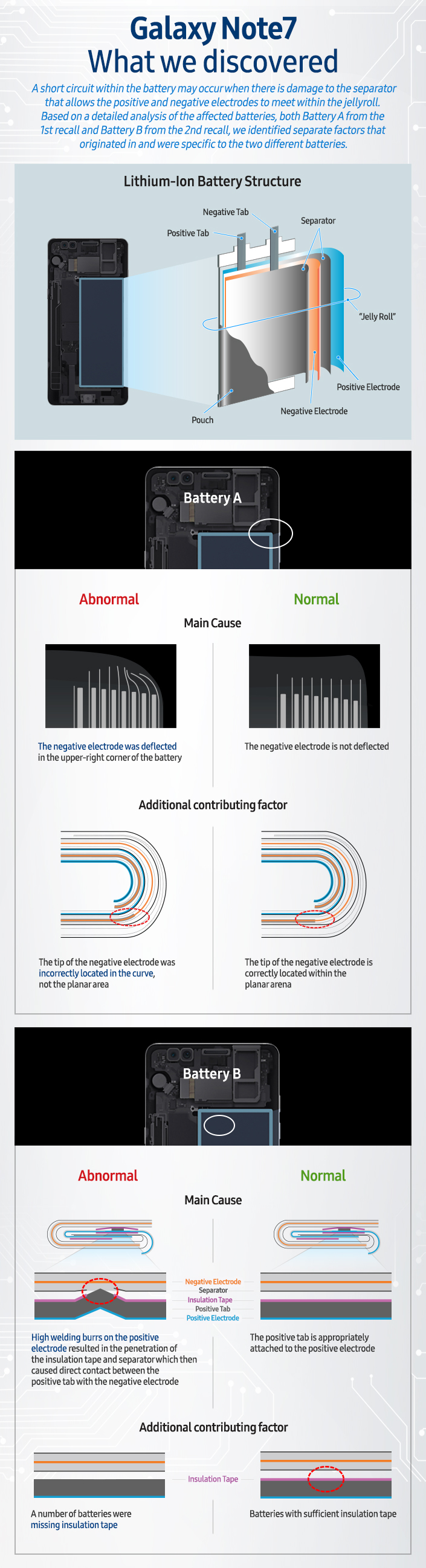 หลังจากการตรวจสอบอย่างละเอียดเป็นเวลาหลายเดือน ซัมซุงได้จัดงานแถลงข่าวขึ้นที่กรุงโซล ประเทศเกาหลีใต้ เพื่อแถลงสาเหตุของสิ่งที่เกิดขึ้นกับกาแลคซี่ โน้ต 7 รวมถึงมาตรการในการป้องกันมิให้เหตุการณ์เช่นนี้เกิดขึ้นอีก โดยนายดีเจ โกห์ ประธานธุรกิจโทรคมนาคม ของซัมซุง อิเลคโทรนิคส์ ได้เปิดเผยผลการตรวจสอบโดยละเอียด พร้อมกล่าวขออภัยอย่างจริงใจและแสดงความขอบคุณต่อลูกค้า กาแลคซี่ โน้ต 7 รวมถึงผู้ให้บริการเครือข่ายพันธมิตรทั้งที่เป็นผู้ค้าปลีกและตัวแทนจำหน่าย ตลอดจนพันธมิตรทางธุรกิจรายอื่นๆ ที่มีความอดทนกับสิ่งที่เกิดขึ้นและคอยให้การสนับสนุนเสมอมา